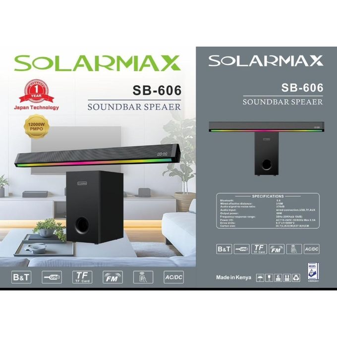 Solarmax SB-606 2.1CH 12000W Soundbar – Bluetooth, AUX & FM Radio High-Power Home Entertainment System