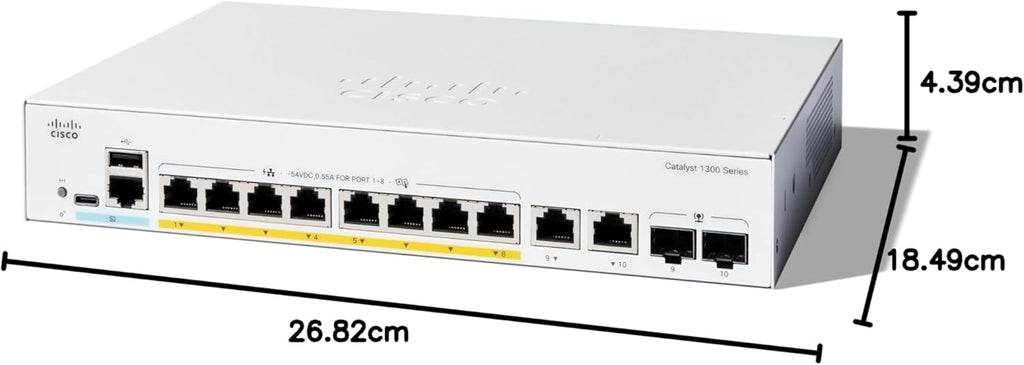 Cisco C1300-8P-E-2G Catalyst 1300 8-Port GE PoE Managed Switch – Compact Enterprise Network Switch