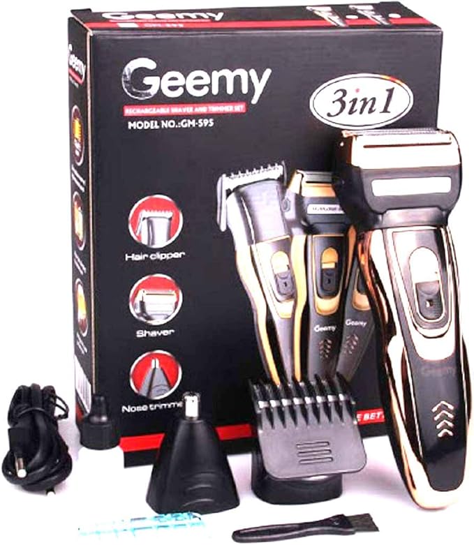 Geemy GM-595 3 in 1 Rechargeable Shaver and Trimmer Set Beard Nose & Ear trimmer