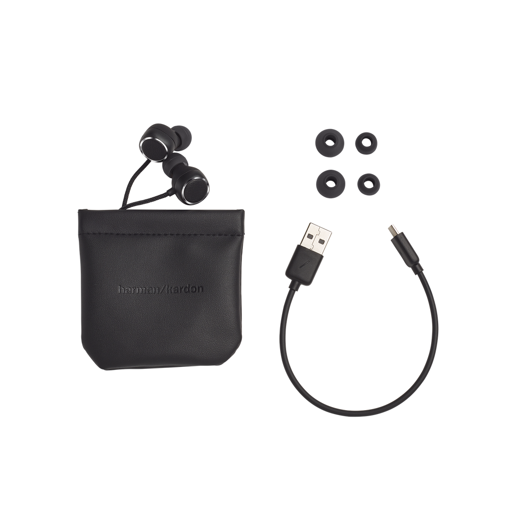 - Safe and Sound: 1 x Harman Kardon FLY BT in-ear headphones with tangle-free cable and magnetic earbuds, complete with carrying pouch, ear tips, charging cable, warranty card and safety sheet