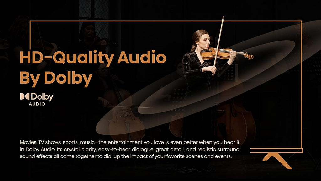 - Audio system: Two midrange speakers (7 W x 2), with immersive DTS Virtual X sound processing; supports Dolby Digital and lip-sync adjustment