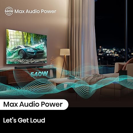 - Let’s get loud! - 540W Max Audio Power; Hold on to your socks, 8 speakers produce a total of 540 W of maximum power. Fill the room with sound and reveal the depth of your auditory impressions even more fully. Time to add some sound!