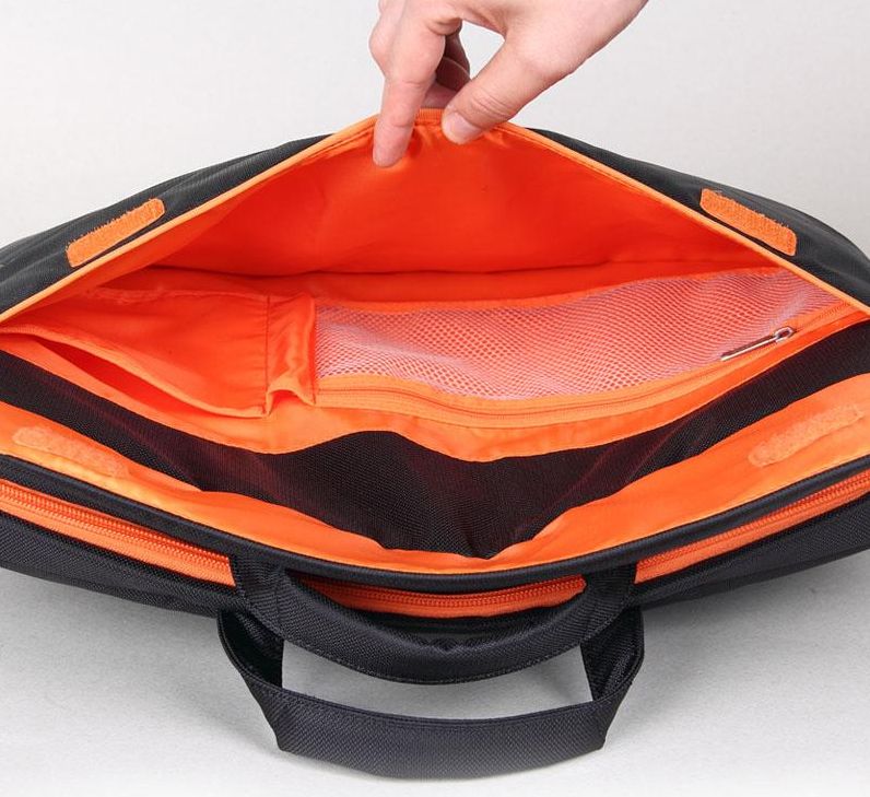 - Portable and Professional - This bold and colorful nylon bag has an easy-grip top handle and detachable shoulder strap for portability. The interior laptop sleeve features shock-proof air cell cushioning to protect and secure your device. The bag is also water-resistant, withstanding splashes and spills.