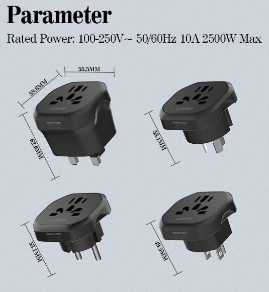 • Universal Travel Compatibility - Works in over 150 countries, supporting multiple plug types for seamless international travel.