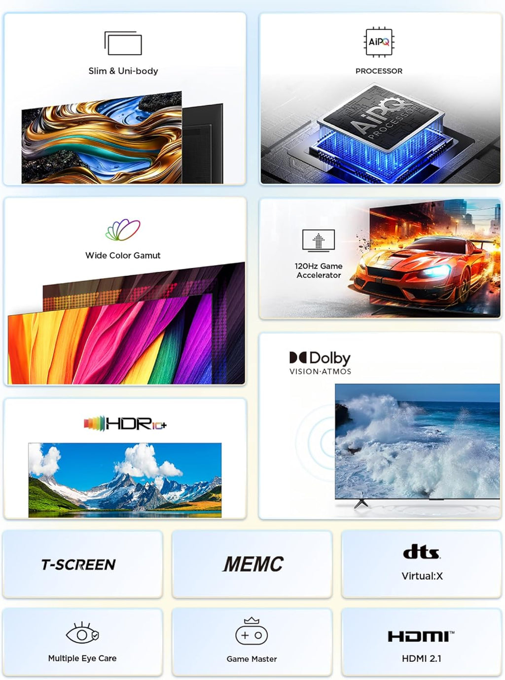 TCL 65P755 65-inch 4K UHD Smart Google TV with HDR10+, 120Hz, Game Master MEMC, Bluetooth, Netflix & YouTube
